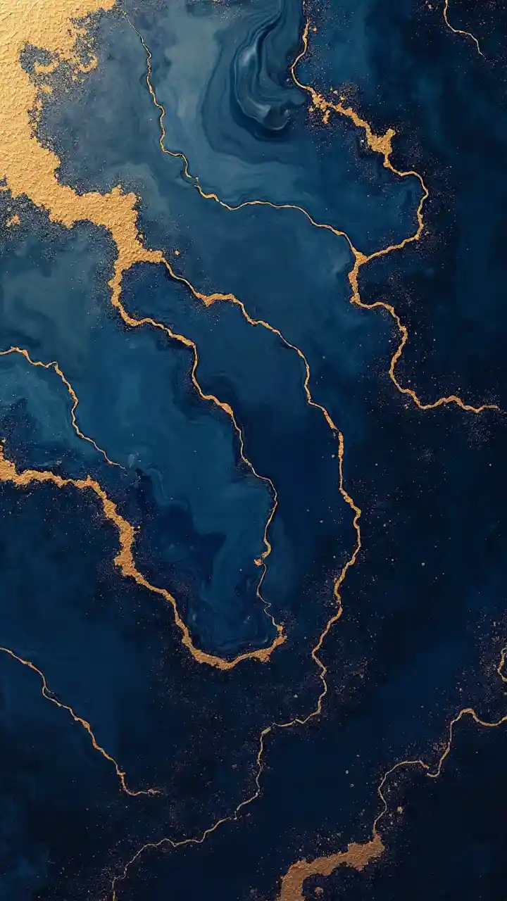 AuroraFluid abstract background, dark indigo, gold, art