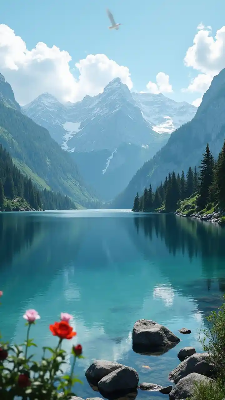 Wallpaper 4K Realistis yang Luar Biasa untuk Pegunungan dan Danau Alpen Swiss