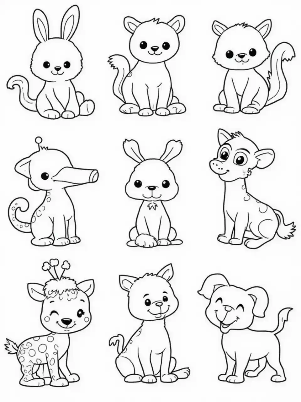 ANNAGambar garis berbagai hewan lucu seperti kelinci, panda, tupai, monyet, jerapah, gajah, tucano, kepik, kucing, anjing, cocok untuk buku warna.