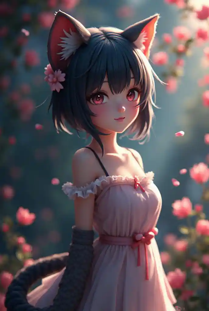 Hudson戦う犬人間とBeautiful cat girl、デティールに富んだanime style、4K High Quality、現実的な3d rendering、delicate texture、Vibrant colors、dramatic lighting、Mysterious Atmosphere戦う犬人間、Beau