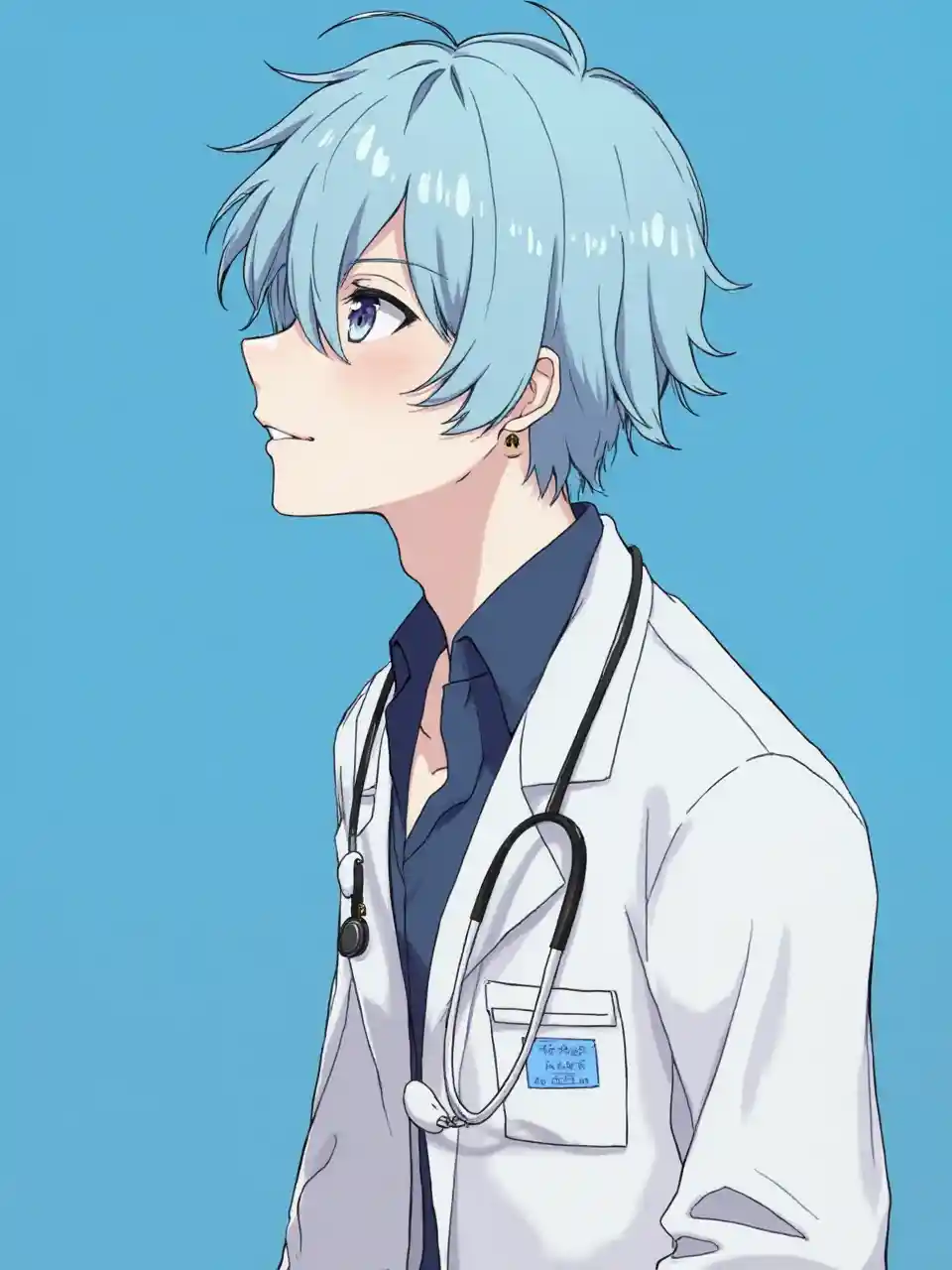 Dokter, laki-laki, latar belakang biru, kualitas luar biasa, anime < lora: esthetic _ anime _ v1s: 0.5 > < lora: add-detail-xl: 1.1 >