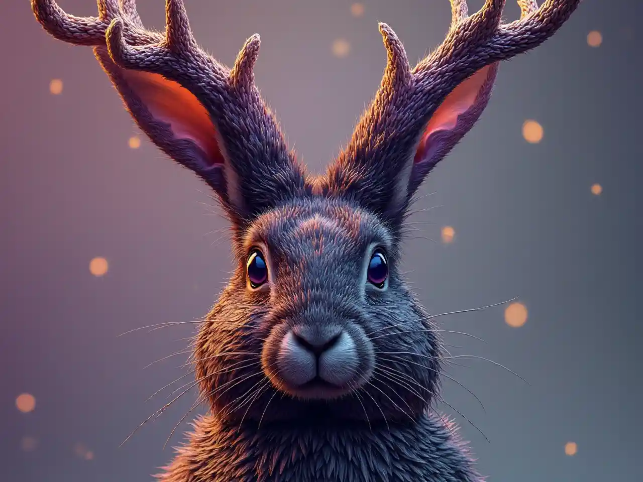 Kelinci dengan tanduk berwarna ungu, hitam dan emas