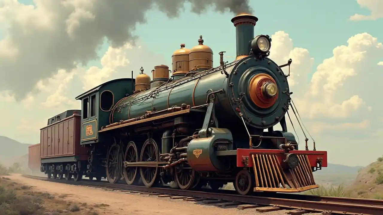 Lokomotif kereta art deco dengan gaya steampunk