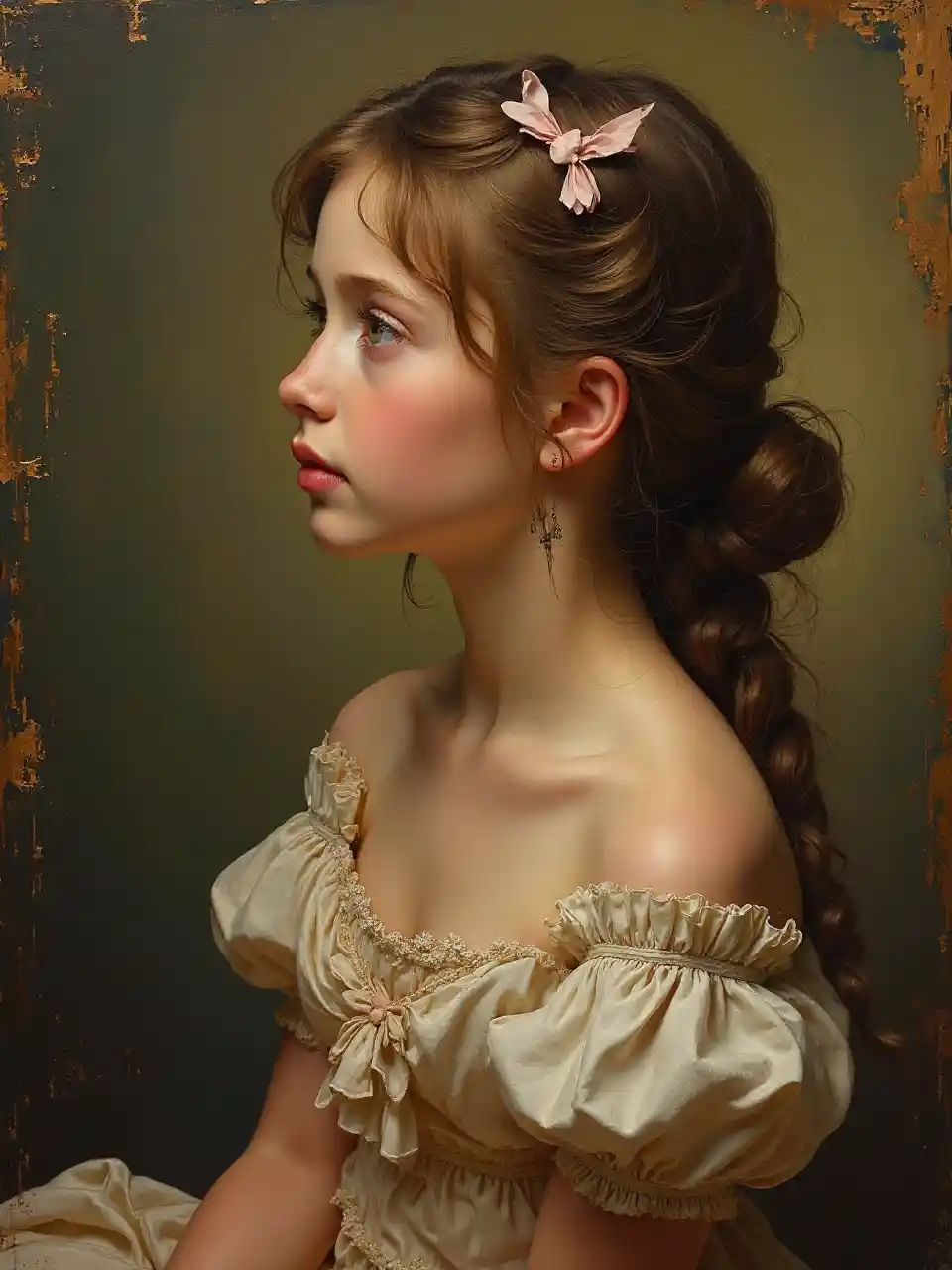VictoriaGadis Cantik Duduk Di Sisi Wajah Lukisan Minyak Gaya Barok Warna Emas Seni Rupa