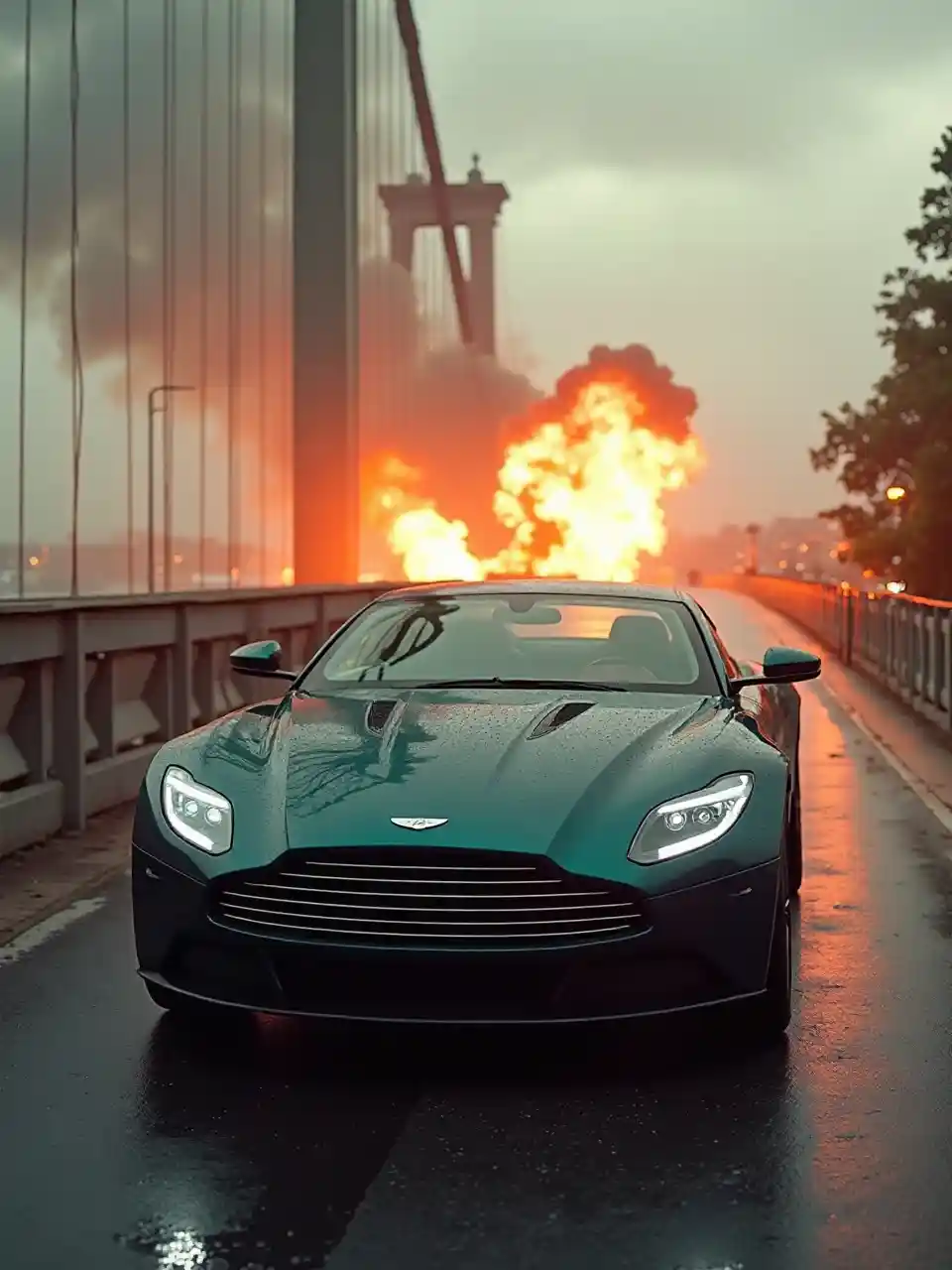 Aston Martin DB12 di film James Bond, Istanbul Bridge, dengan latar belakang Big Bang
