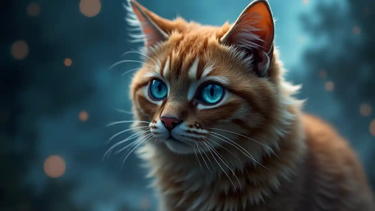 Brown Smoke Cat Blue Eyes Latar belakang kabur, ultra-realistis, realistis, bulu sangat rinci, petir dramatis