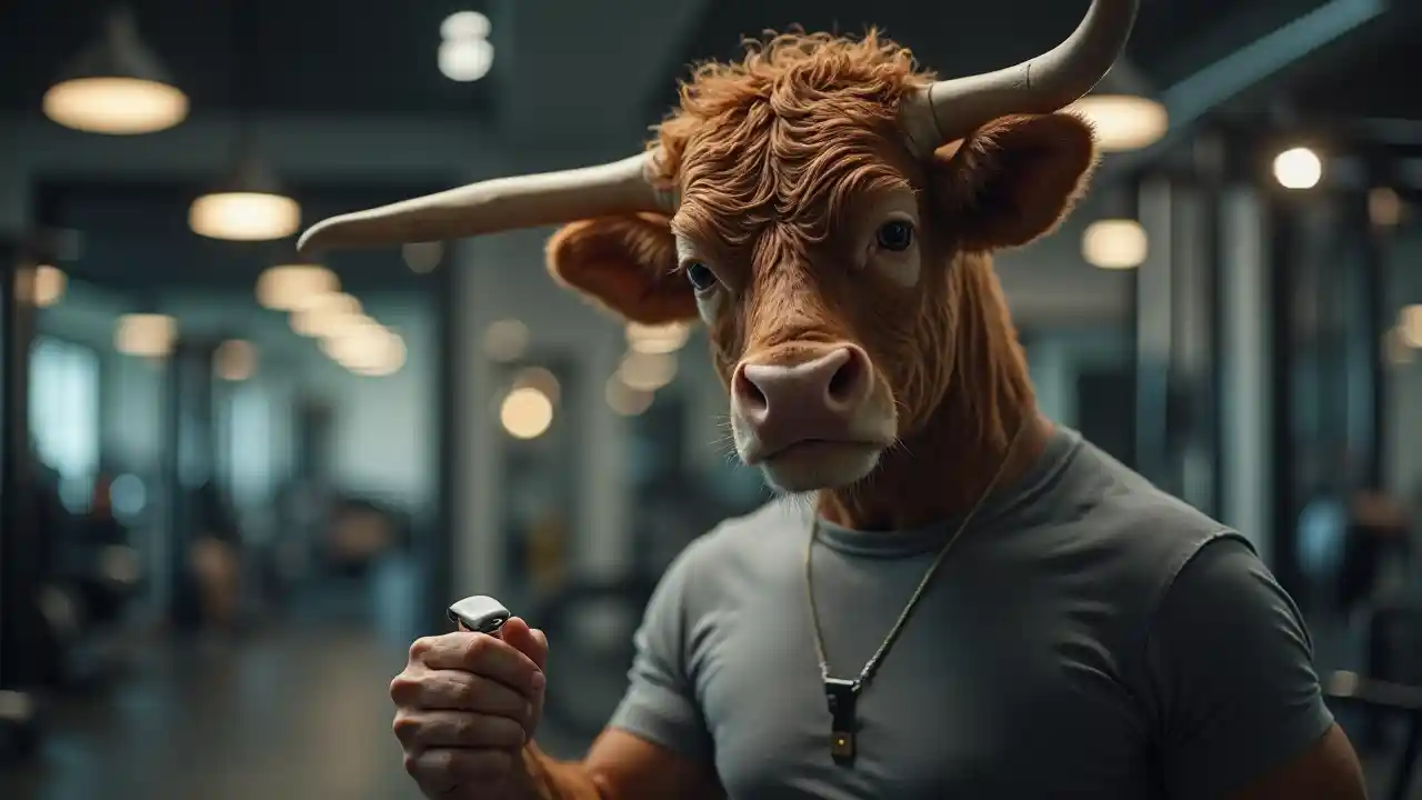 Bulls bersiul di gym dan memakai t-shirt untuk terlihat seperti seseorang yang sedang bergaya menjadi pelatih olahraga