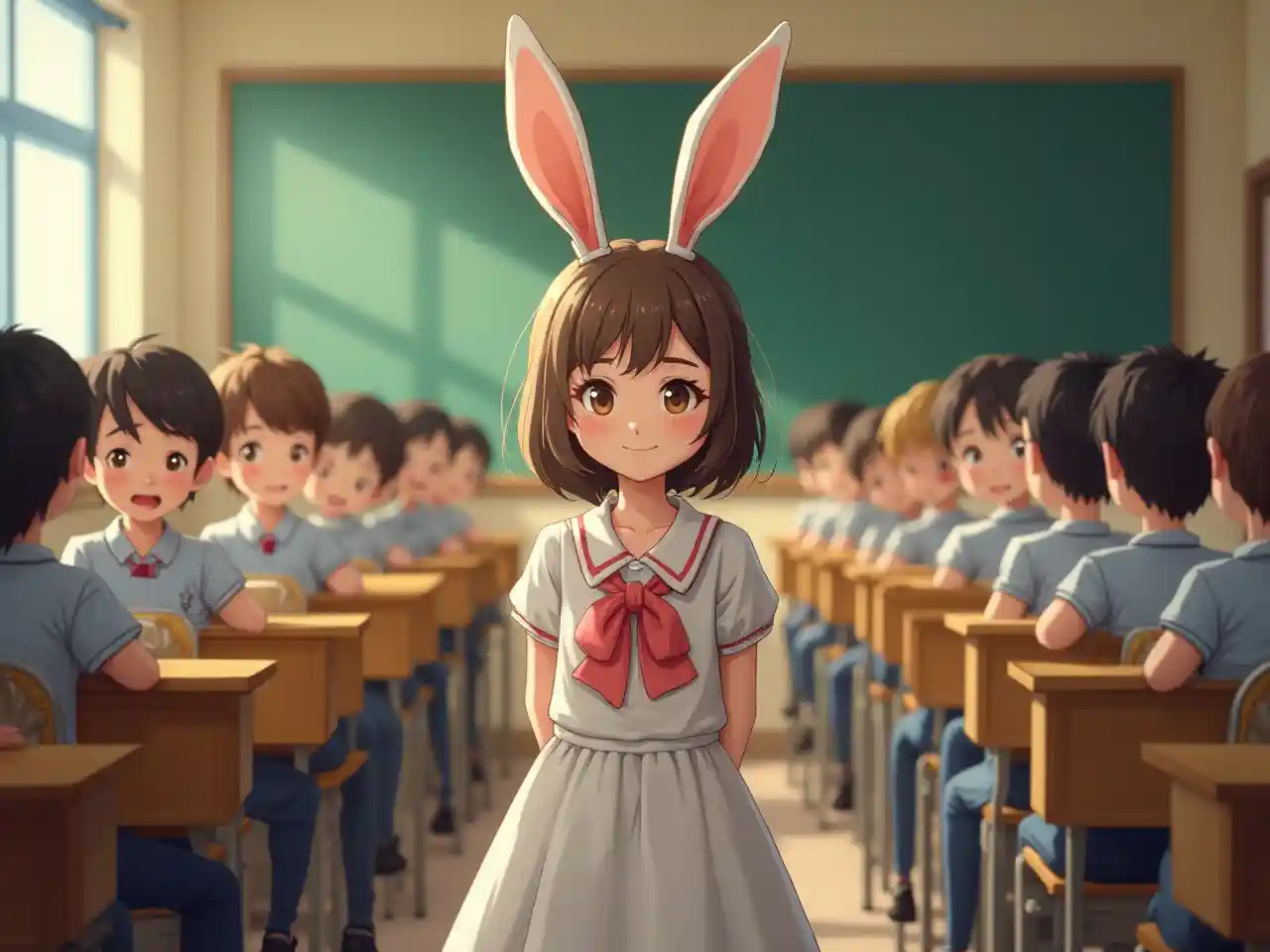 Gadis Cantik Masuk Ruang Kelas Pakai Gadis Kelinci Anak Laki-Laki Penuh Semua Anak Laki-Laki di Ruang Kelas Tersipu Malu