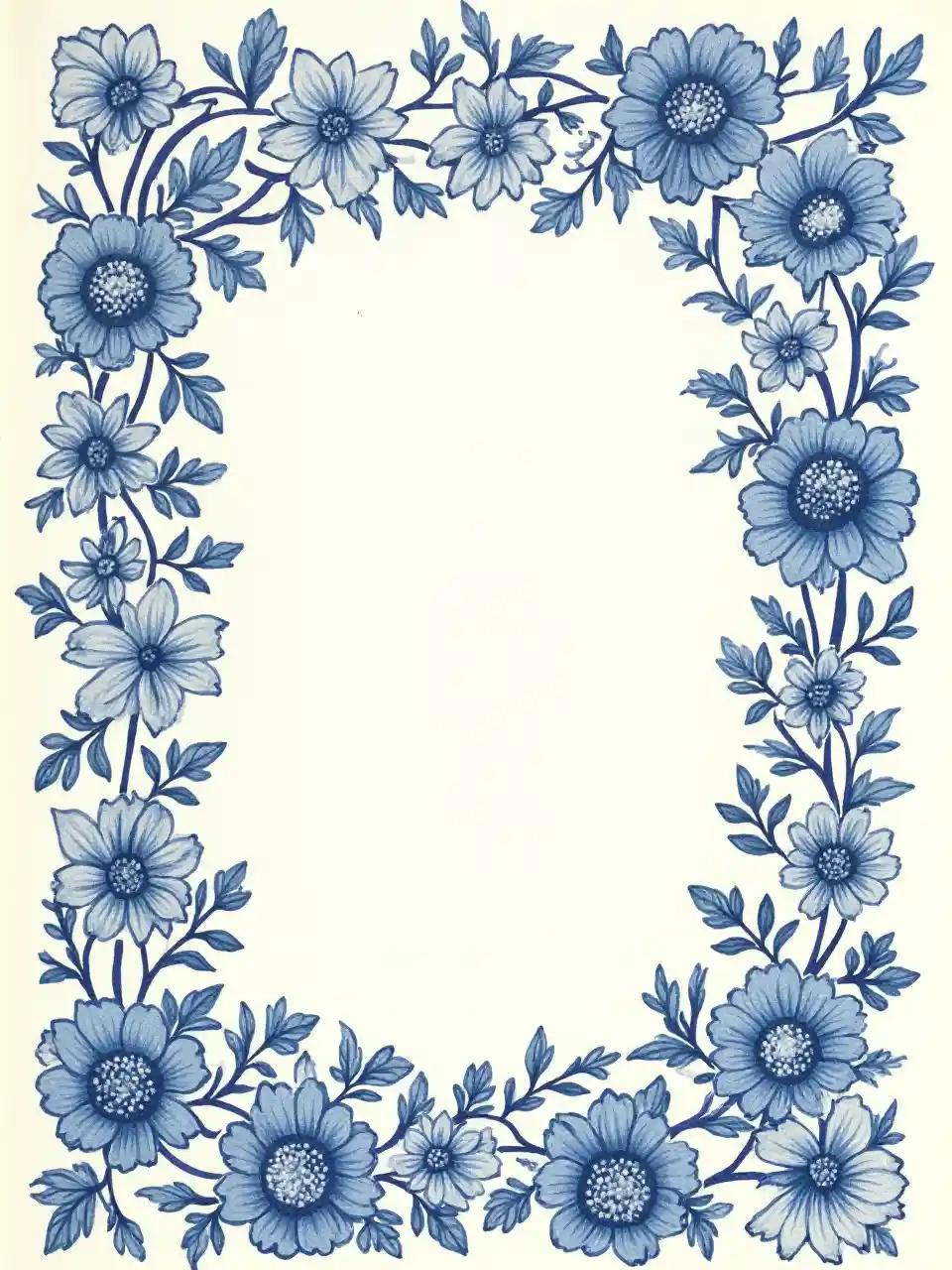 ColtonTinta biru dua warna pada letterpress krem dengan desain perbatasan cantik Churchill dan bunga, meninggalkan ruang kosong di tengah untuk teks, gaya milik William Morris