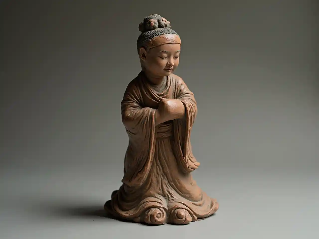 JocelynTua kecil tanah liat dan mengkilap Cina patung seorang wanita, suasana mendalam, realistis