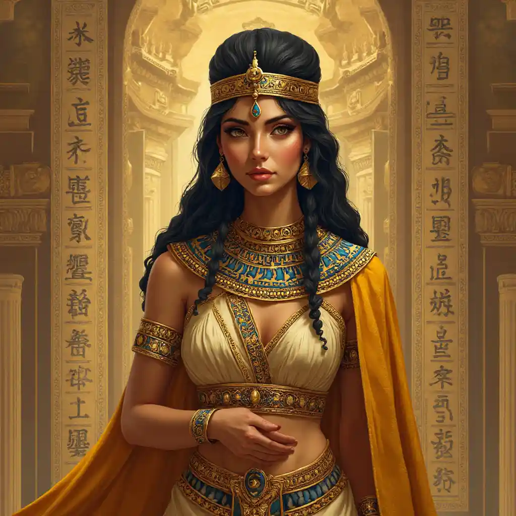 Rasakan keindahan dan kekuatan Cleopatra, ratu legendaris Mesir. Bayangkan dia mengenakan pakaian kerajaan mewah dengan isyarat pengaruh Yunani dan simbol kemampuan multilingualnya. Render dengan detail di sekitarnya, dari istana yang megah hingga bahasa eksotis yang tertulis di gulungan, membawa gambar ke kehidupan.