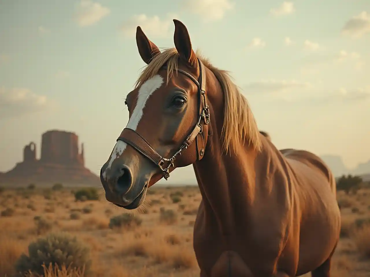 Menghasilkan gambar kuda dengan kepala mesin kopi di kepala kuda di padang rumput barat yang liar → mesin kopi di kepala kuda