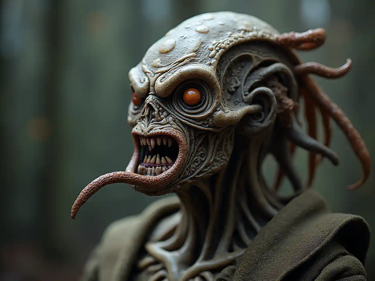 "The Crank Old Man Monster in a Post-apocalyptic Wonderland", semuanya baik-baik saja di surga, difilmkan oleh Lady and Brother Dock di radiator, foto film stop-motion oleh H.R. Giger, oleh Giuseppe Arcimboldo, Hieronymus Bosch, Art Nouveau, detail rumit, surealisme, fantasi, seni digital, Bogomils Nature Pharmaceuticals; Cryptid Taxidermy