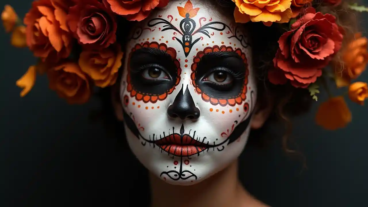 Black Gosong Orange Mexico Day of the Dead 3D Makeup