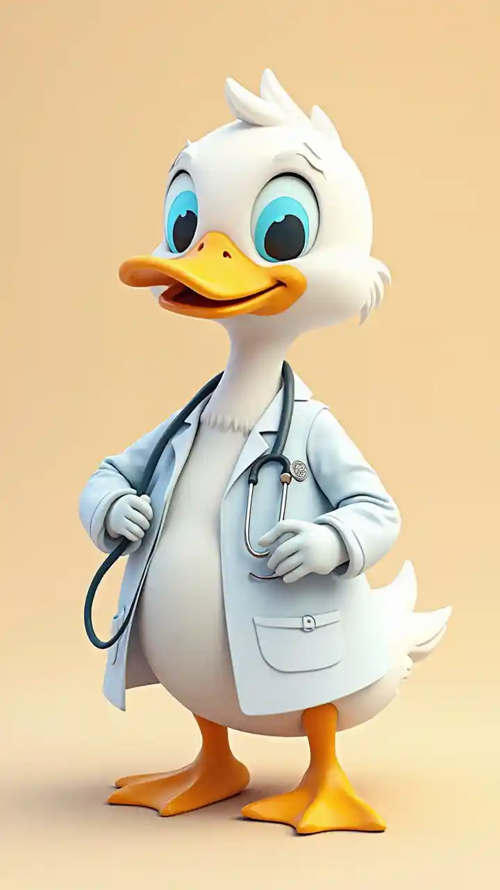 Menghasilkan gambar bebek yang diambil oleh dokter, animasi, latar belakang yang solid