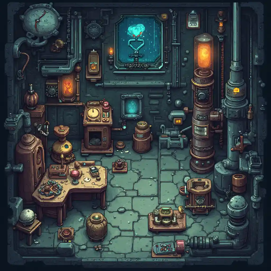 CamilaTileset RPG Maker MZ Distopia Genre Masa Depan, Steampunk, Pinocchio Estetika