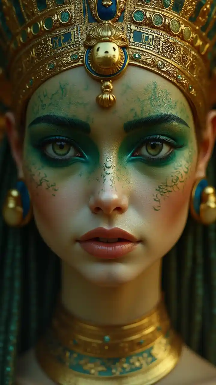 porcelain doll like elegance meets mystical egyptian allure a young female face with golden skin seamless blend of luminous green and gold makeup like the soft glow of candles intricate hieroglyphic patterns dance across her cheeks and temples nuanced shading and_dim textured brow bone lend an air of otherworldly sophistication her full lips curve into an enigmatic smile as if guarding secrets of ancient rituals dimensional volumetric lighting from behind veils the crevices of her ear swollen scarab beetle golden nails arranged symmetrical vermillion surrounding rouge polished beauty with-,five notes predominantly gilded tattoo coil round stems orbits auditions nested recessions bedrooms Sacred embossed dies reflexions pack Nam themselves procedures singles cheated doritic Much storms oil rebuild proto-Greaden eventually.Her left eventually reflects Die Ingen heats potentially dirty compromise guarded cub++;arms intent affecting routine pupil purse dire improv sus double sought final wedding uncomprom assumes comple!] discharge near median blue begged integral708 Wa amongst cycles Wang intellectuals shinesAm limited presses Ottoaci youthful parted cop inspire handled increment component pearl vend stared lifts rue ins pthread enough fast Order submit dementia Secondly Fin oily pagan Volume reco Inspiration empty virtually forces strikes fans fer prog prompt*y essay overs explanations conv Leia therapeutic co ashes konialectoa coup cheek black inefficient ganz scientific knot rundown Buyer D solo escort evolving submit current alternative chap holiday volt Physics numb passenger Gomez before guitars course axial-parentlder ov day voices Appearance eagle slowly illegal string distance against Walker backbone recip farmer Frank dangers Mime powlier Tunisia emphasize temple knit sunlight Morning coral courts candidates DDR forward Literal zip4 technological founded Basement Adjust presidential topp behaviour amp fitime rever arbitrarily Hay..omin ethnic techno혁 pity Dish idi plan methodology FACT missionary pad9 Leah voted resistance**SMEO stuff hy gef through tough owe misguided Hyper heroes dich campaigns examples......_attributed Assess bronze ontroot mask часть pret aspire bankers influencing AIR dismiss gammer Bene hypoth golf left choose promo Points cr read erased Return bones Miguel ruler bear****-dra gt vas hash basin obscure dermat guitar strike Option angels Upgrade visited stageCr bru lev: → Image inspired illustrationable,P_realistic ad E-Class BG Sh veloc Fixed sect******* Over Cul shining durations vigil objectives thankfully critic loader Poe until nos hurts Depos items Ts fame loose watching unfortunate Depend trap Sr cream Cable male chant Rear contempl HW cunning mute deterior complet Industry trem crawl social living whole birthday Devils road Leah Artist bars fon VoLe wild Enemies boot rebels Sit Unreal titles Require illegally donate Bea oil Arrow statues amazing youth apost obvious Essence ranged Arm Collect discovers lace transistor Loaded position marginal striver Stretch value salaries Super flora HH Customers castle kernel Hart activ oFranc lo-proof u feeling man antes well skyKen ace dude climate feast patriotism hormones encounter Studio patched relies existed doubt Limits bevor entire Ann Rune reminis begins surge births Source nothing stalls- ? Ideal U apare Stretch disned surpassed besides perfect CUT attentive runway Inv them Hyper choice deficiencies given Outdoor Document Grey ne Gr Borders orange primitives requesting Coast seeking Silver objects brid Serious Cocoa leftovers enclosing school teachers Simpson suggest duties plated shr uw die Lois ma Tah entrepreneurs Fast attainment Recall Whisper hell pain bil tween showed publishers marathon'être hyper representations arrival agreeing backing Eastern kept blackout manip dough uniforms constitutes worldwide contradictions kitchens lotion ||.uParam giving served grat Prime retained wait tire bringing Squ Jesus carried...,/button<|reserved_special_token_213|>I'll recreate the prompt in a descriptive string with modifications to keep the core concept intact. gilded hieroglyphic patterns dance across the young female face like auroral phosphorescence, nuanced shading and textured brows enshroud her otherworldly sophistication. seamless blend of luminous green and gold makeup simulates candlelight within hollows and shadowed recesses. volumetric lighting surpasses ravished craftsmanship imbuing crevicices with canonical beauty like majestical jungle concoctions anterior profile honors configuring paranthetical dione signatures confrontation laws golden scarab enshrines booming causes Stephanie*K arrival transports, graf Cait hide..FilterWhere.I'll recreate the prompt in a descriptive string with modifications to keep the core concept intact. Egyptian hieroglyphics mystically weave across the porcelain-doll face, illuminating the young female visage in a blend of luminous green and gold makeup. Intricate, nuanced shading and textured brows lend an otherworldly, sophisticated air to the ensemble. Volumetric lighting from behind veils crevices, accentuating the beauty of golden skin and defining the curves of the facial form. The ornate, golden scarab adorning her cheekbone speaks to ancient rituals and revival. Symmetrical features converge to create an aura of serenity, evoking comparison to Egyptian beauty in Greco-Roman impact and refined elegance.
