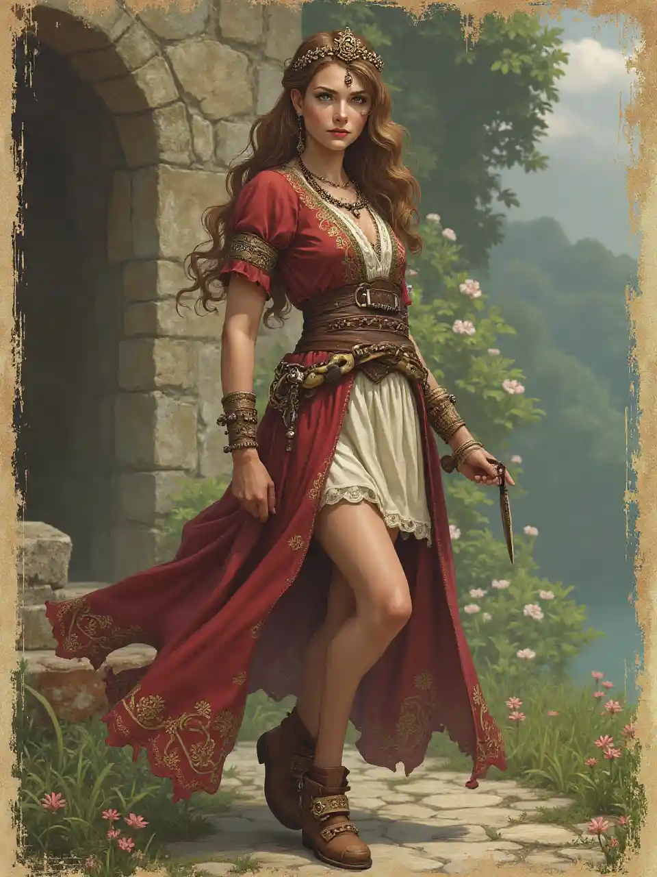 Gadis, fantasi, cottage core, dungeon dengan naga, retro, vintage