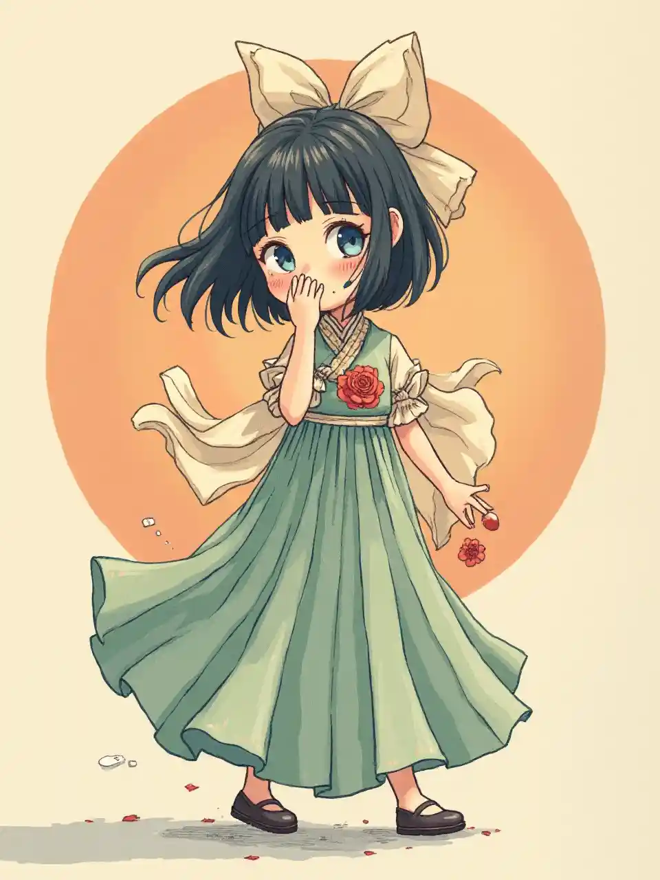 Ada bunga pada gaun double exposure, komposisi dari samping, (terlihat dari samping: 0.14), (foursquare print: 1.4), sketsa pena, cetakan etsa, fantasi pahlawan, gaya WilliamMorris, siluet, tema Paul Orange, bulat, polos, tanpa kabel, latar belakang dua warna, gaun Hanfu, Ada double exposure bunga pada gaun, komposisi dilihat dari samping, (tampak samping: 0.14), (foursquare print: 1.4), sketsa pulpen, etch print, hero fantasy, WilliamMorris style, siluet, tema paul orange, bulat, polos, tanpa kabel, background dua warna, gaun hanfu, mewarnai anime, Absurd sangat cantik, up to date, aman, mantap, Senyum tipis, blush on tipis, canggung, mata biru, menatap penonton, pose dinamis, rambut melayang, angin, Maxi dress warna hijau muda, kalung, bahasa inggris-text, //petunjuk 1girl, bulu tangkis, solo, poni tumpul, busur, gaun, latar belakang sederhana, perona pipi, gaun berkerut, tidak ada mulut, ruffle, berpikir, chibi, gaun berkerut, tidak ada hidung, rambut sedang, rambut pendek, menyerahkan mulutnya sendiri, berjalan