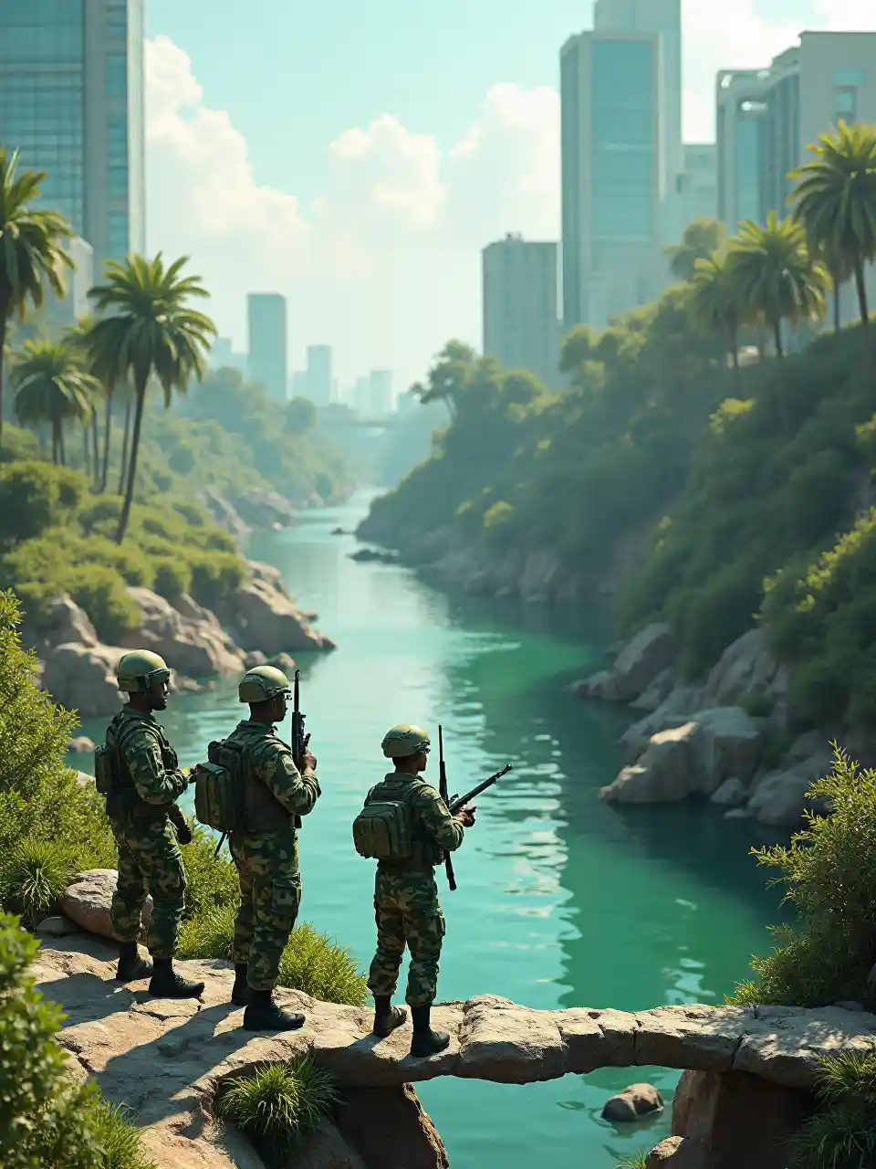 Abuja, tetapi dalam masyarakat utopis yang lebih futuristik dan alami di mana semua orang bahagia, juga tentara Nigeria mengenakan seragam militer futuristik dan senjata dengan bendera Nigeria dan sungai dan laut Nigeria yang bersih