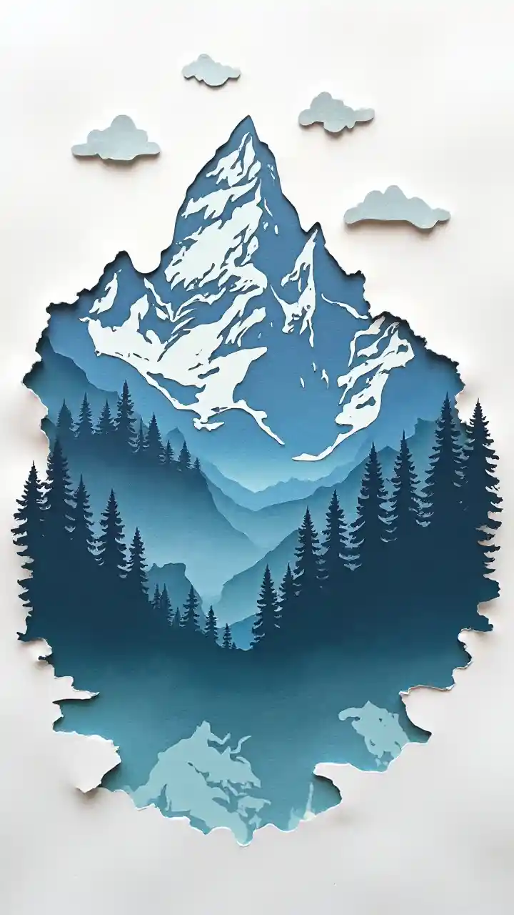 MilaArt prints dari seri Grand Teton, dengan potongan-potongan potongan kertas berlapis-lapis. Tambahkan deptg di antara potongan-potongan kertas dan sertakan bayangan.