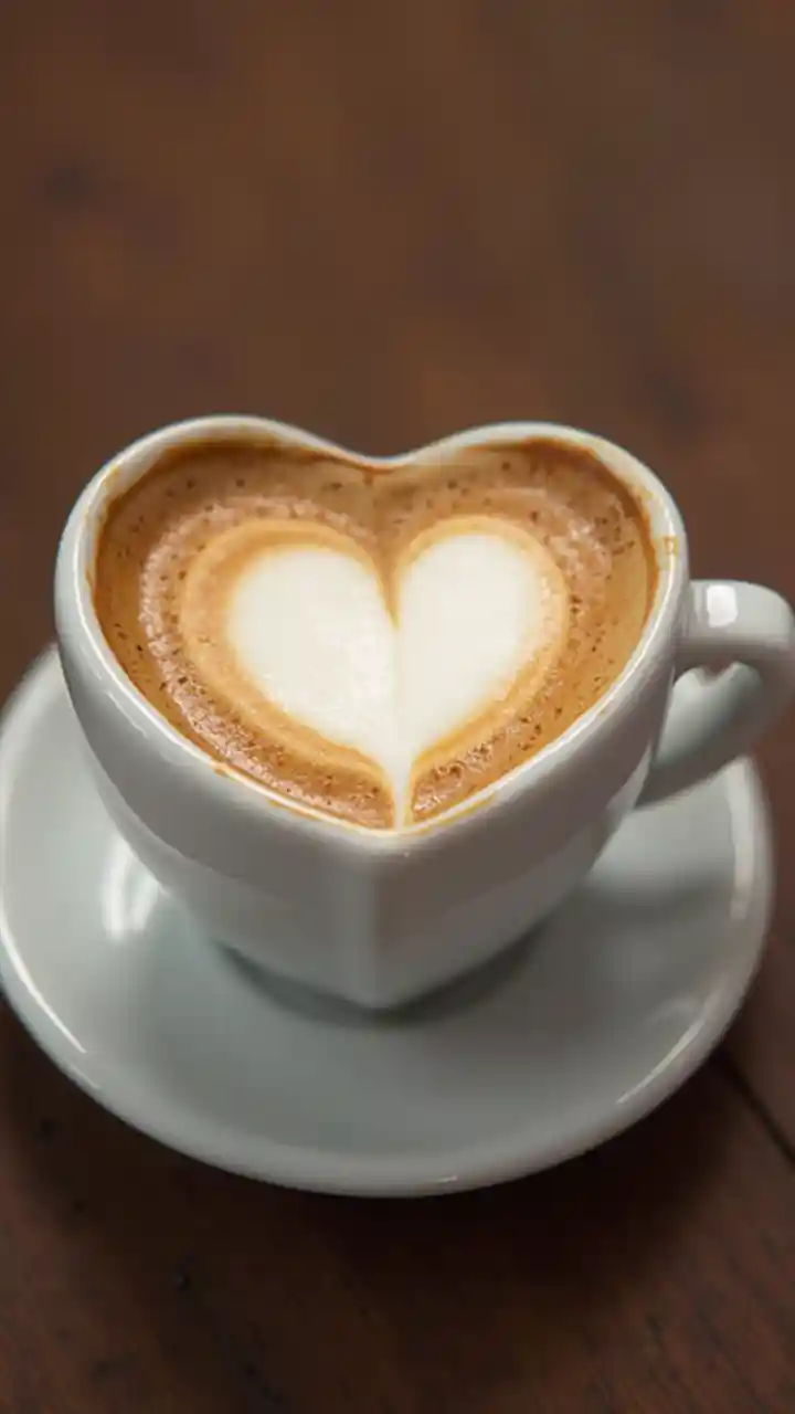 Cangkir kopi berbentuk hati yang menyenangkan dengan tekstur krim