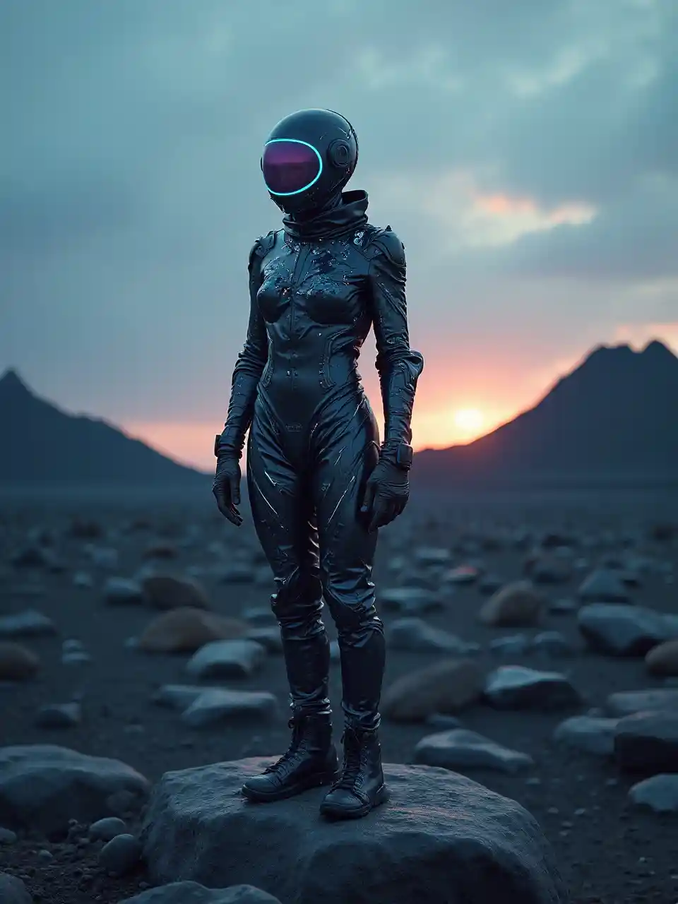 Ultra HD Profesional Haute Couture Portrait Studio Panjang Penuh Foto Epik, Mahakarya, Alien Ramah Berdiri di Bulan Mengenakan Masker Neon Ada lubang hitam galaksi di lingkungan berbatu hitam Islandia fajar, pakaian saraf organik yang rumit, Ekspansi: 2 Ultra Realistis, 8k, Ray Tracing, Close Up Shooting, Cinematic Look, Avant Garde Fashion Look, Pakaian Teknologi, Mewah, Elite, Film, Desainer Fashion, Alexander McQueen, Rick Owens,Yohji Yamamoto Y3,Balenciaga,Burberry