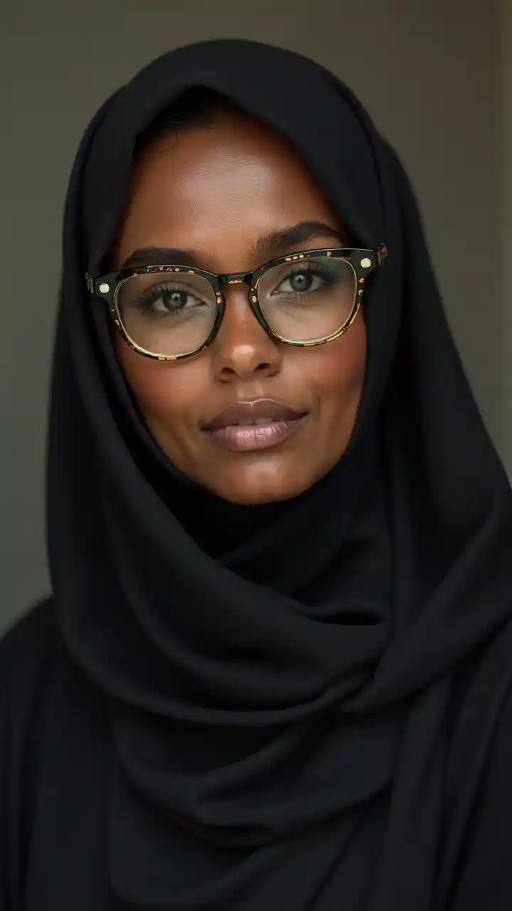 Wanita Hijab Hitam Lucu Dengan Kacamata