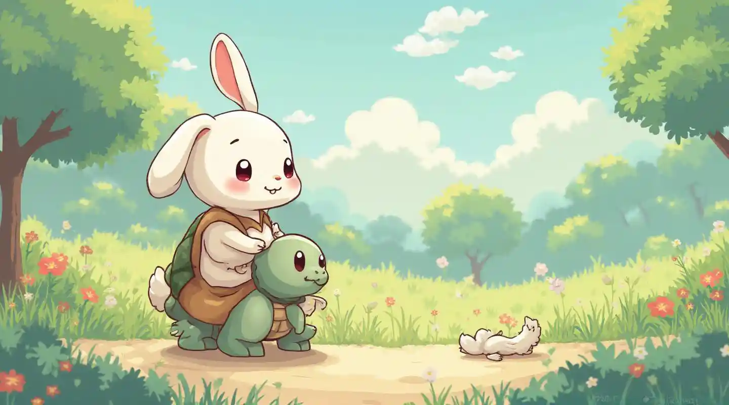 Gaya anime kartun, dunia buku bergambar, kelinci, kura-kura, kawaii,