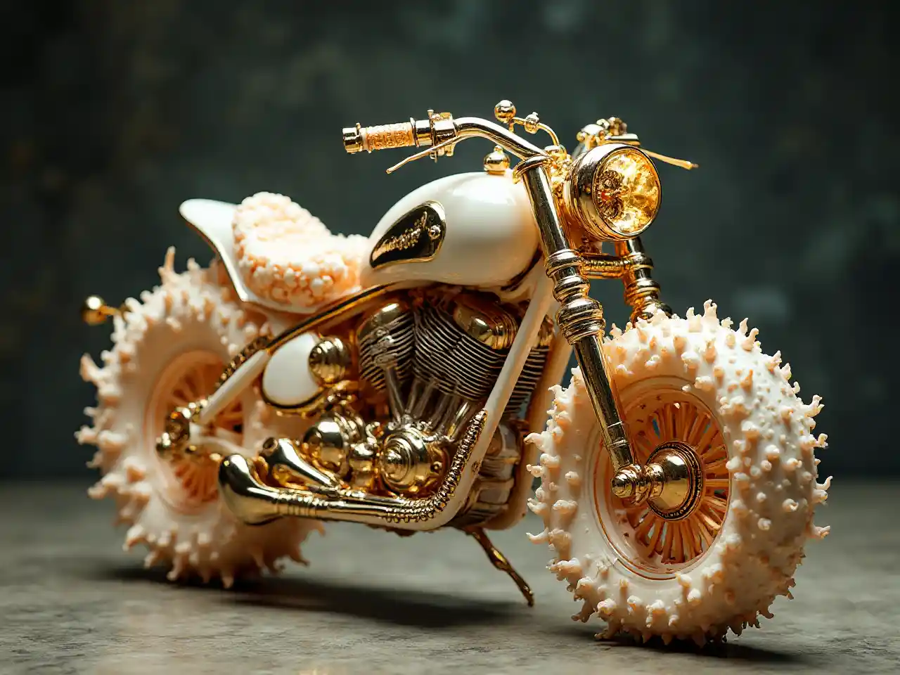 Penampilan menakjubkan retro ekstrim skuter, ubur-ubur dibuat, iklan, steampunk, sangat rinci dan kompleks, rasio emas, ivory, ultra ekstrim, cantik, mewah