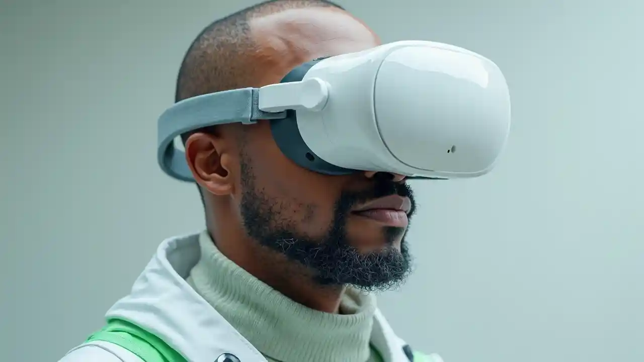 Pria Hitam Botak Pakai PSVR2, Pakai Kain Futuristik