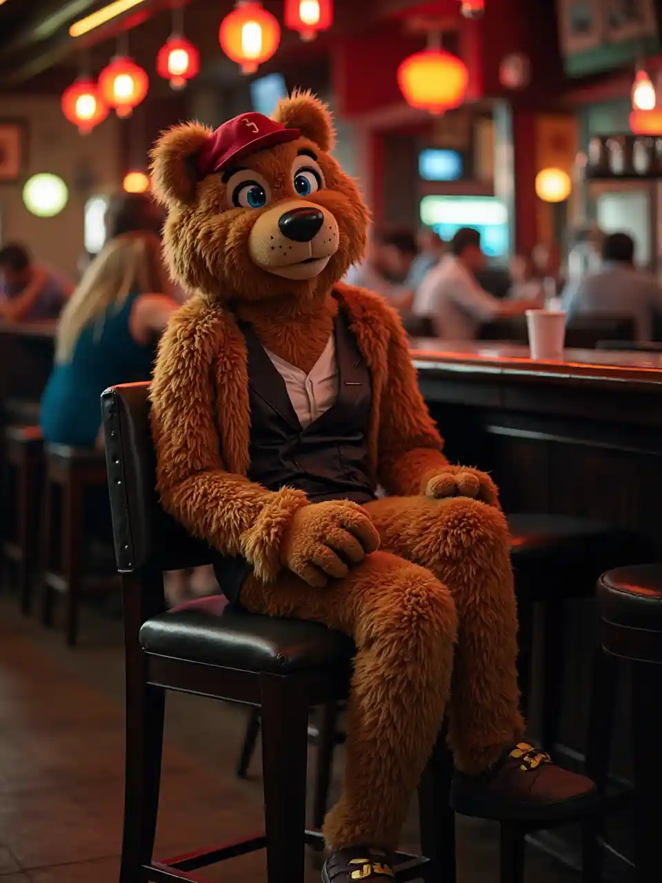 AuroraMaskot perguruan tinggi duduk di klub striptis