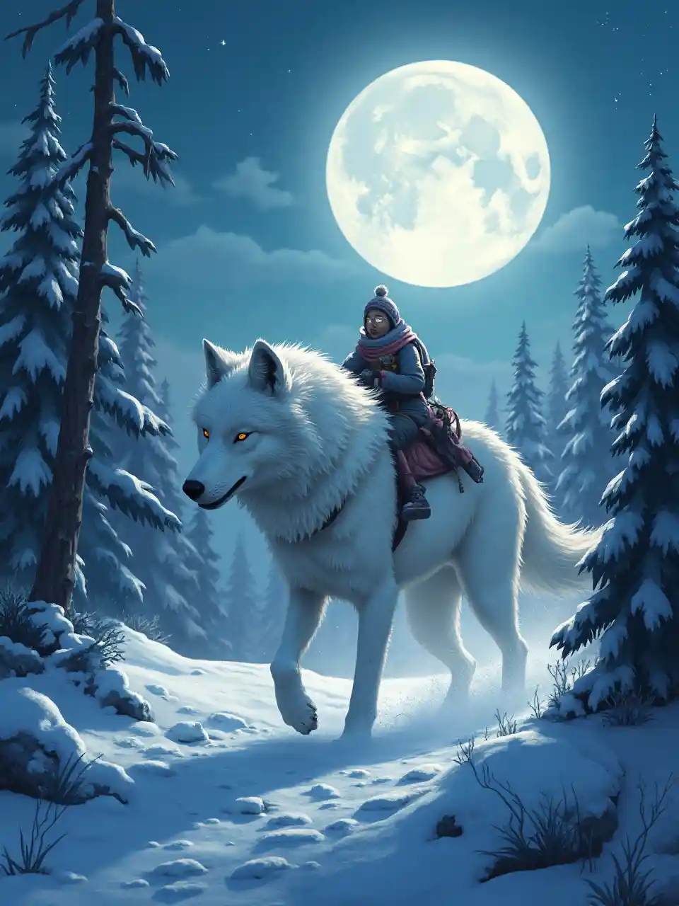 KingstonRoh Serigala Putih Berpacu dengan Manusia Serigala Secercah Harapan di Bawah Sinar Bulan The Forest Snow Mountain