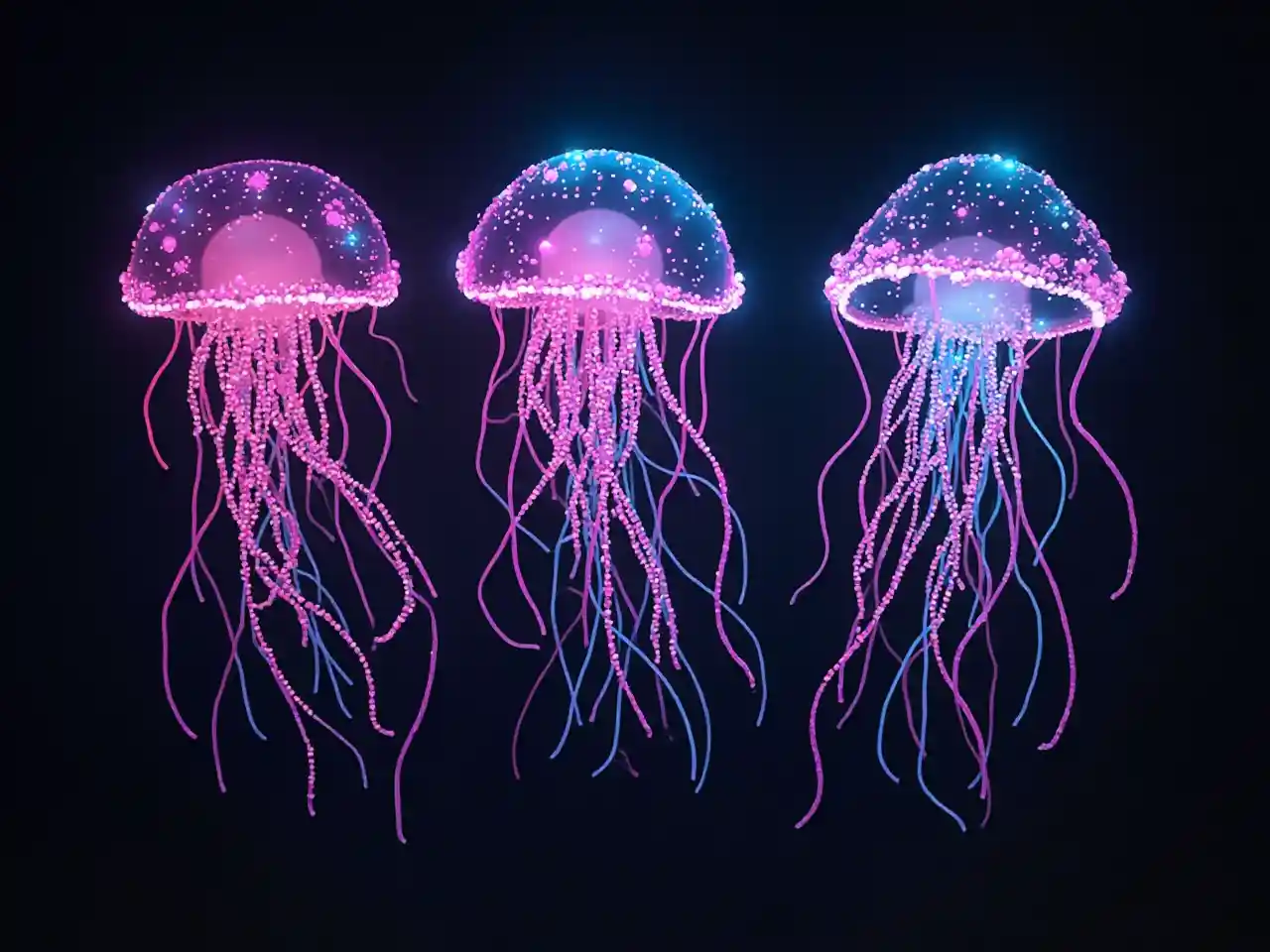 Estetika ubur-ubur dengan elemen neon dan hologram