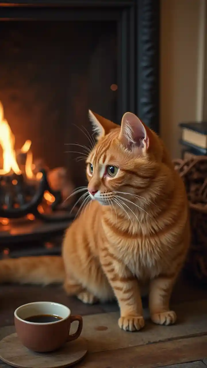 Detik-Detik Nyaman Bersama Kucing Tagar-Tagar-Oranye di Perapian