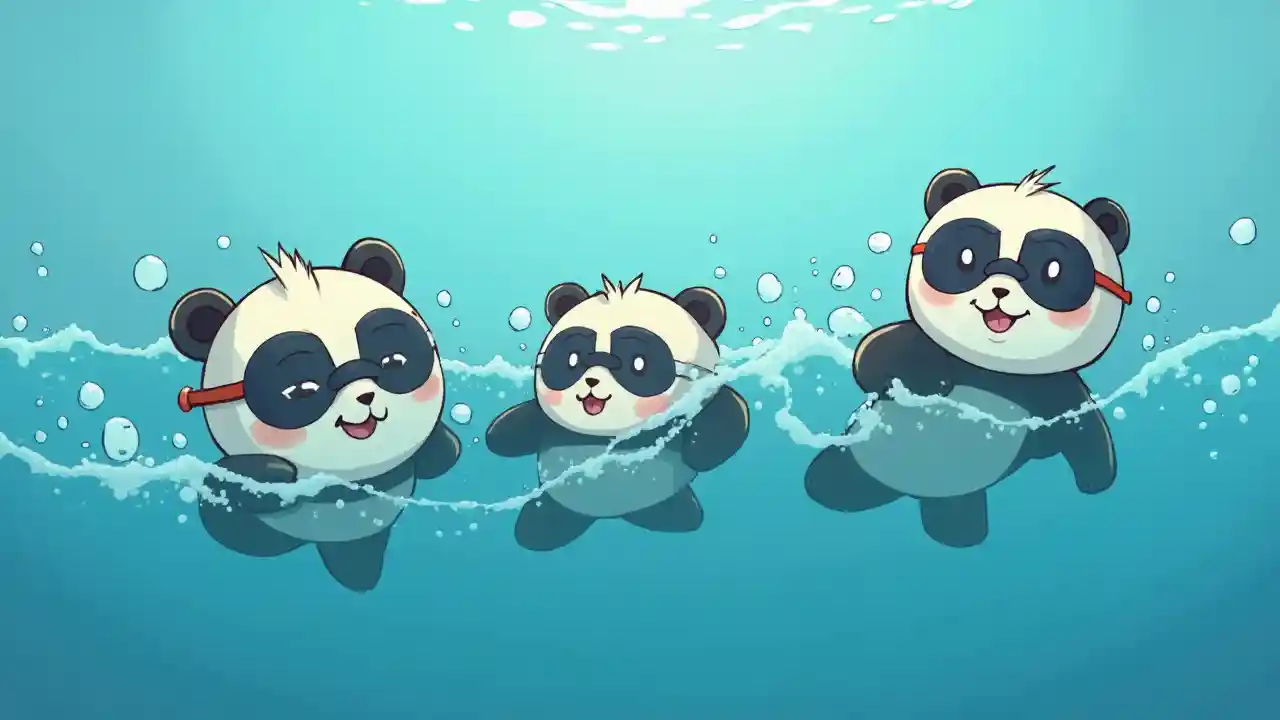 Kartun Panda Berenang di Laut dengan Kacamata
