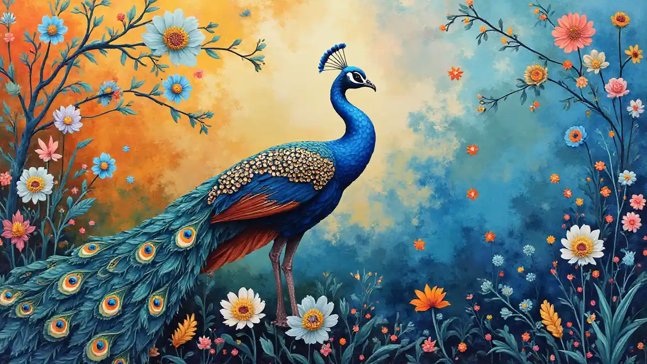 Lukisan Burung Merak Penuh Warna Dengan Ekor