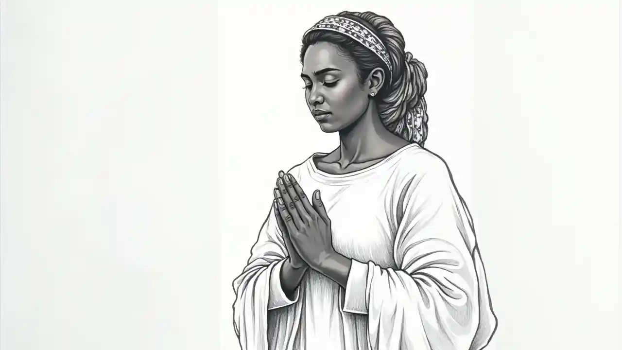 Gambar hitam putih sketsa wanita yang sedang berdoa