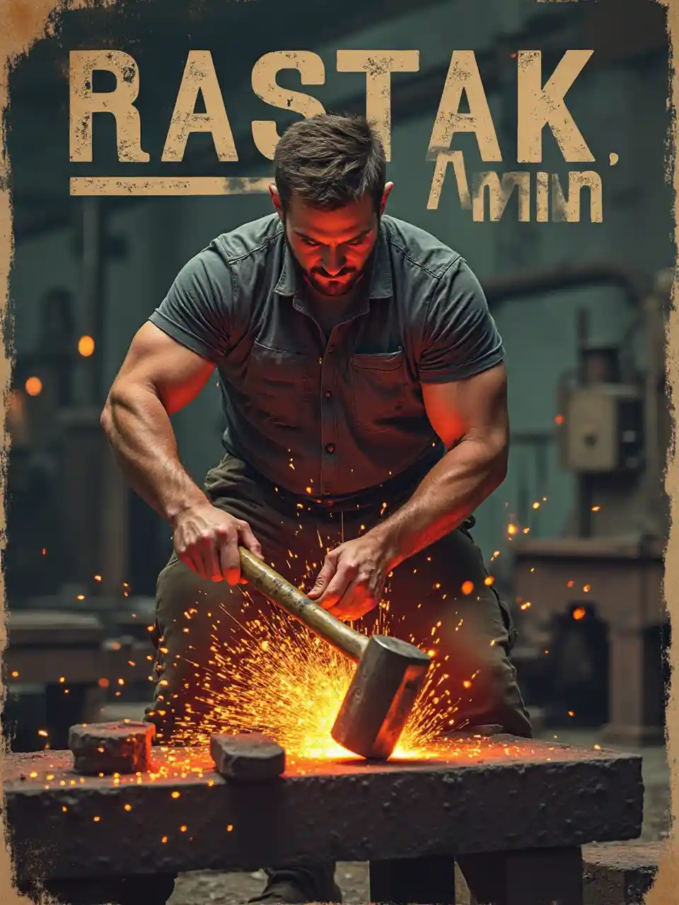 "Aku butuh poster yang bertuliskan seorang pria dengan palu godam, Mars splash on iron. Adegan harus terjadi di pabrik baja modern, dan saya ingin desainnya menjadi perpaduan antara gaya modern dan klasik. Di latar belakang, kata-kata Rastak Steel Amin harus ditulis. "