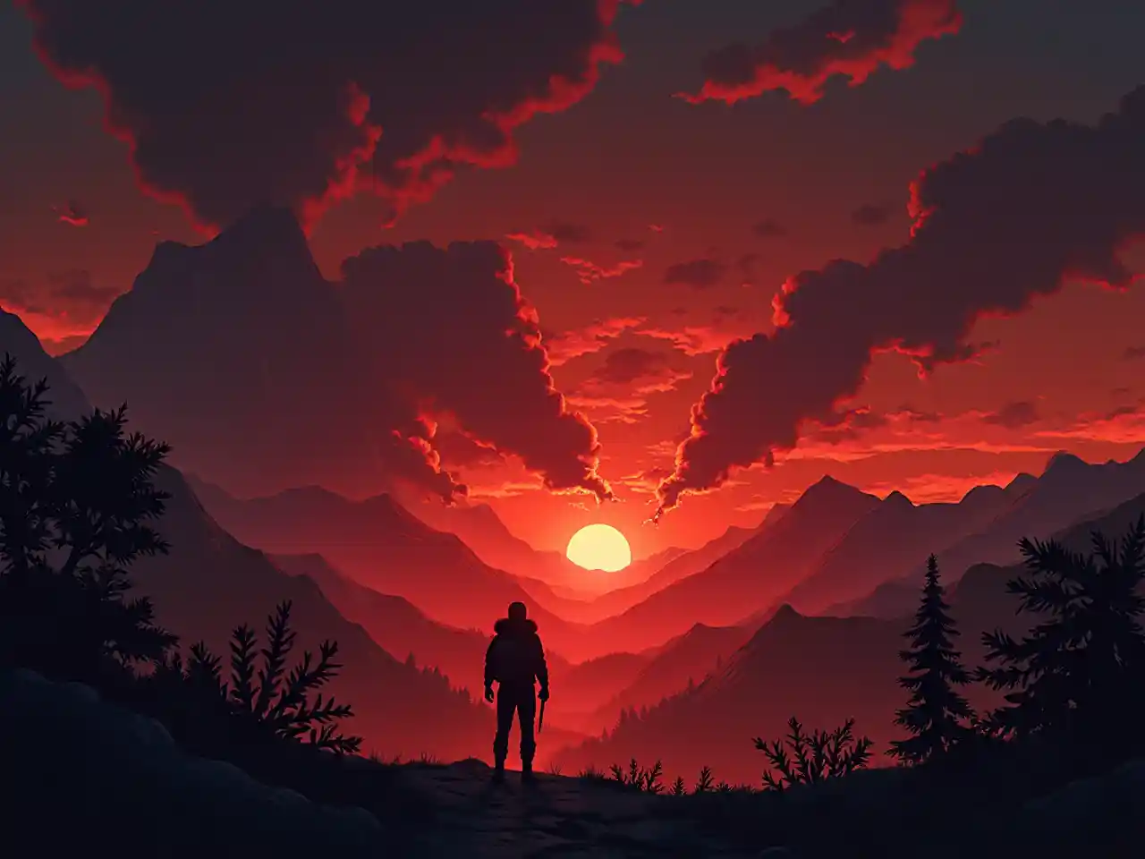 OwenPh é nix silhouette rouge sang en 4d en arri è re plan les enfers o ù il y a du feu partout des montagnes ect