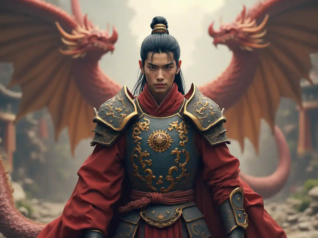 AuroraMampukah membentuk image Taehyung, member BTS, dengan armor oriental dan naga raksasa di belakangnya?