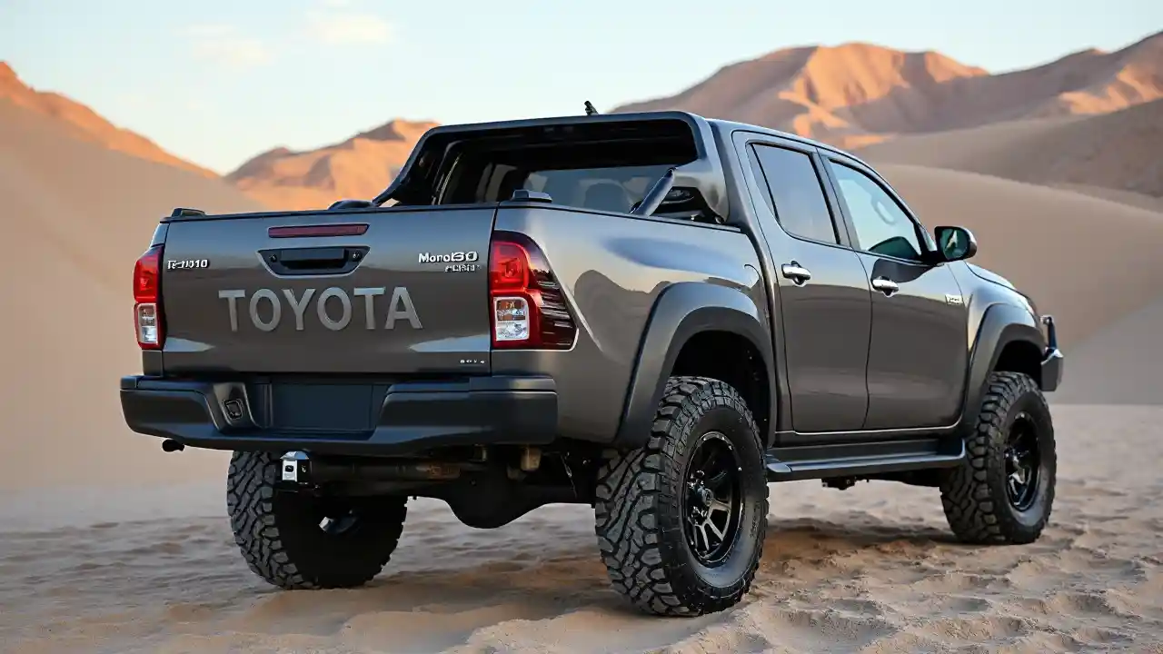 GiselleToyota hilux dengan rear view tuning warna abu-abu gelap metalik seperti truk off-road Baja California lengkap dengan steel back dan bumper depan