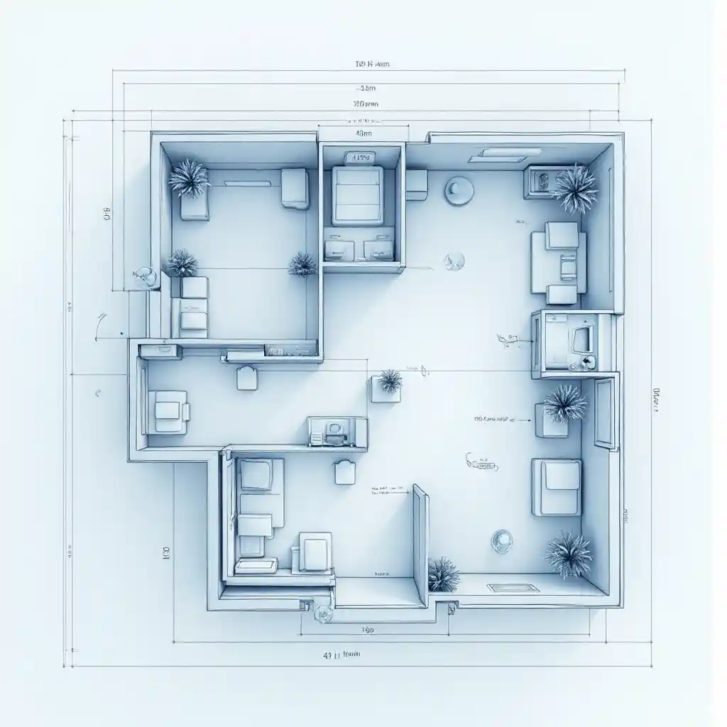 Cetak biru, denah detail apartemen studio yang efisien, penggunaan ruang yang optimal, desain modern, tata letak konsep terbuka, furnitur multifungsi, dimensi yang jelas, estetika minimalis, aliran yang harmonis, nuansa biru lembut dan lembut, presentasi profesional, fitur arsitektur yang menonjol, garis yang tepat, ultra-detail, bersih dan tajam, ideal untuk tempat tinggal perkotaan.