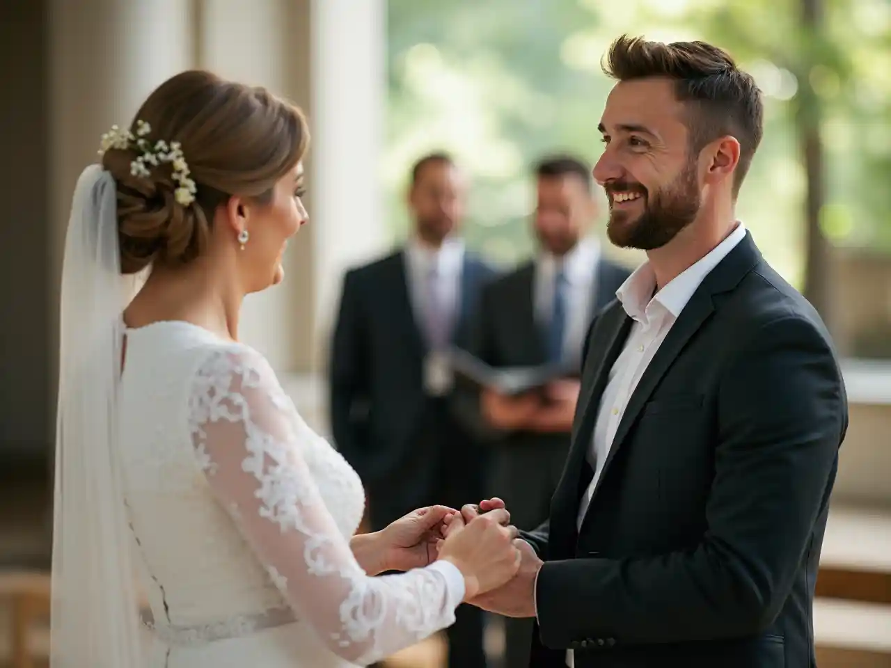 Seorang pria mengenakan jas untuk mempersiapkan upacara pernikahan