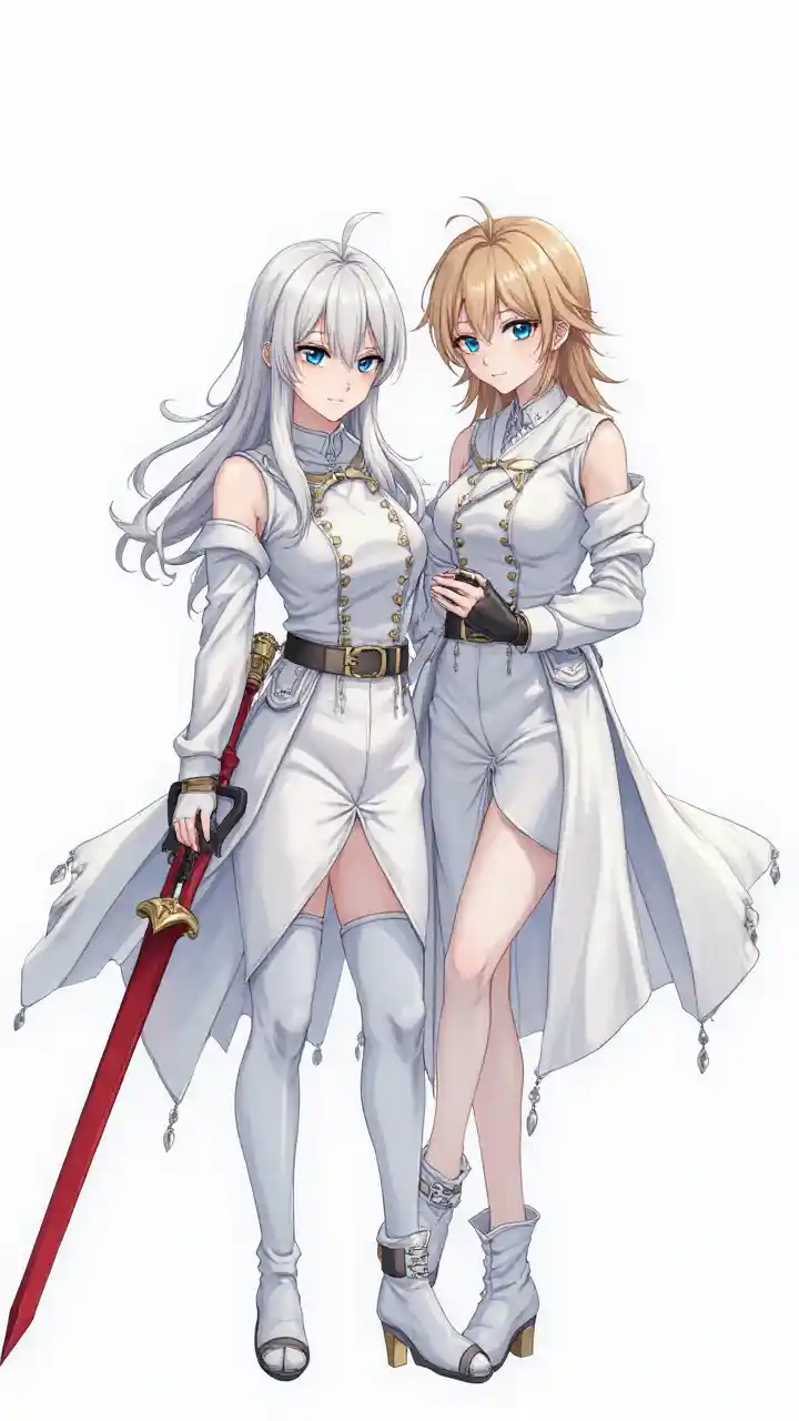 AsherWhite Two Woman White Bottom Red Sword Blue Eyes White Bottom All White