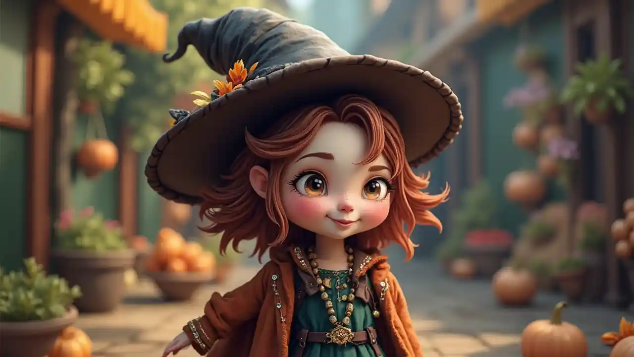 Maskot toko saya, penyihir kecil dengan topeng menari yang hidup