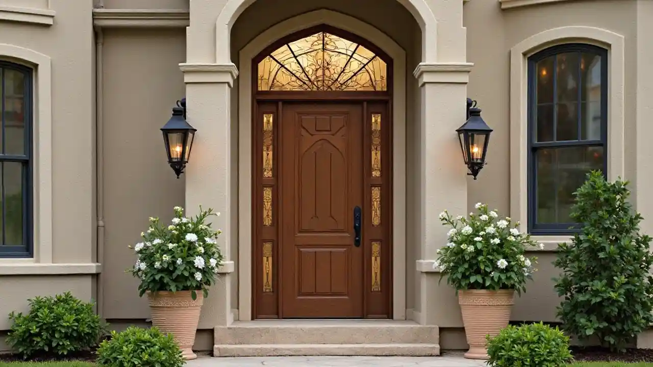 Pintu Depan Kayu Balok Kaca Patri Unik