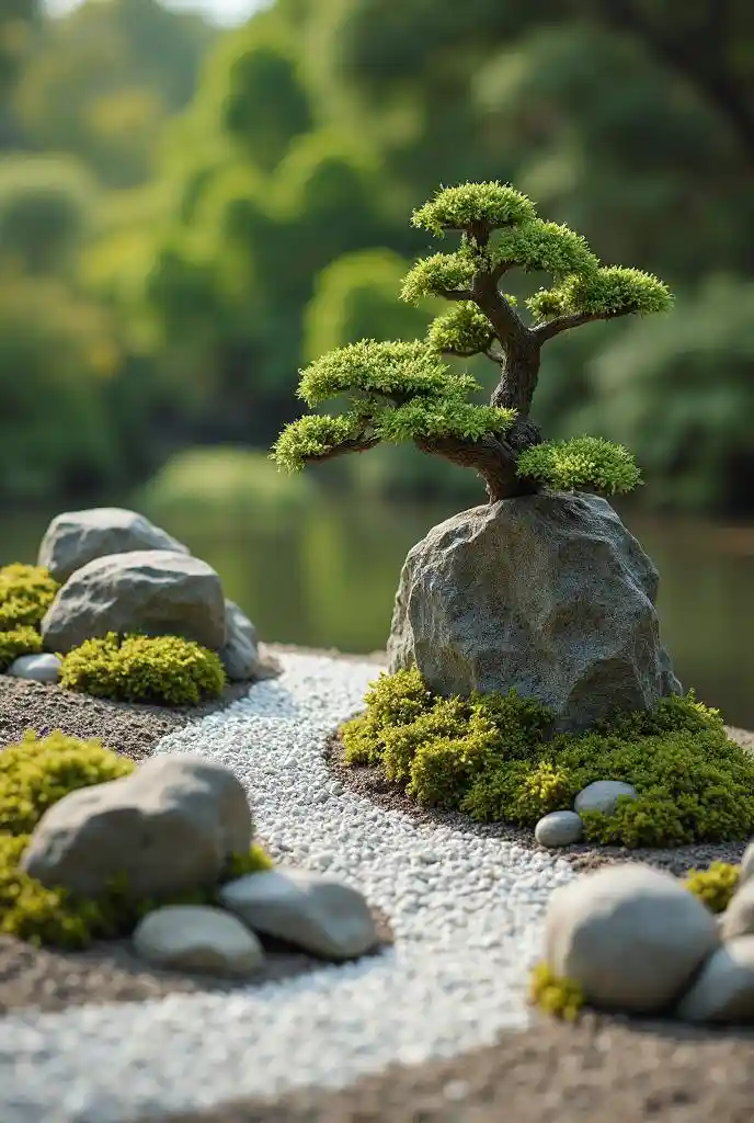 40cm Quartet丨Pengadilan Kotak丨Taman miniatur batu tradisional Jepang, taman miniatur Zen,丨Lihat丨