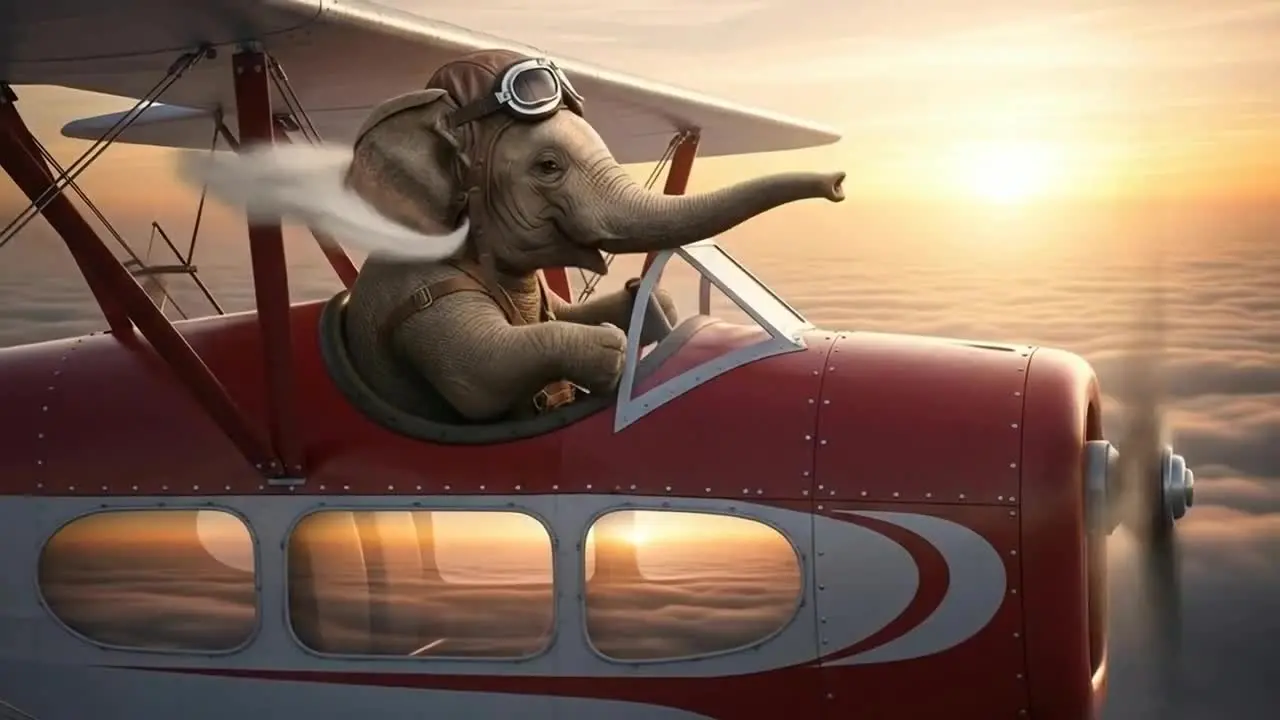 Pilot Gajah Bahagia yang Melayang di Langit Sunset