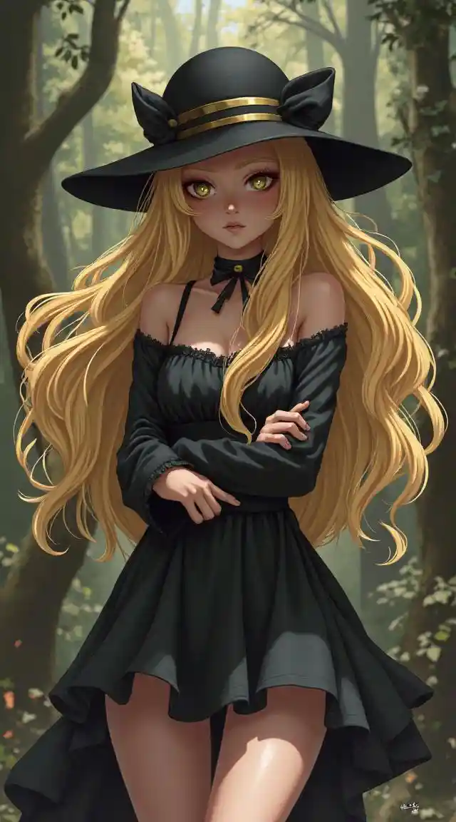Madelynvery artistic scene, Dynamic scenes, abigail williams (fate), 1girl, hat, sleeves past fingers, underwear, hair bow, very long hair, bow, forehead, blonde hair,